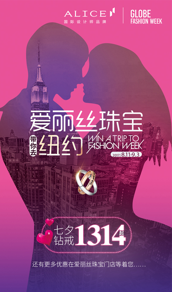 Let romance stop, Alice jewelry portrait of "fashion lovers" vote activities in the world to find the most fashionable, the most sweet CP. Vote first, will be funded by Alice jewelry, take you and your lover to  to participate in  Fashion Week, director of their own fashion blockbusters.